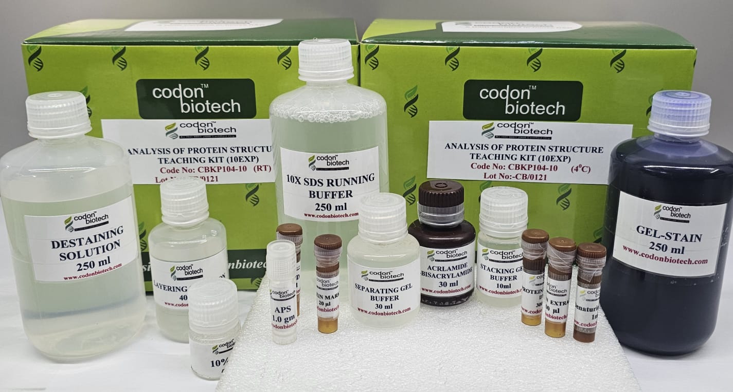 This kit helps students understand primary, secondary, tertiary, and quaternary protein structures using simple models and experiments. It enables hands-on learning of protein folding, bonding, and structure–function relationships in an interactive way.