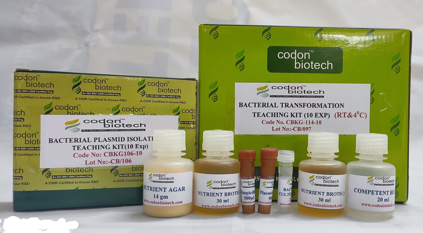 A teaching kit that allows students to perform bacterial transformation and observe the uptake of foreign DNA.