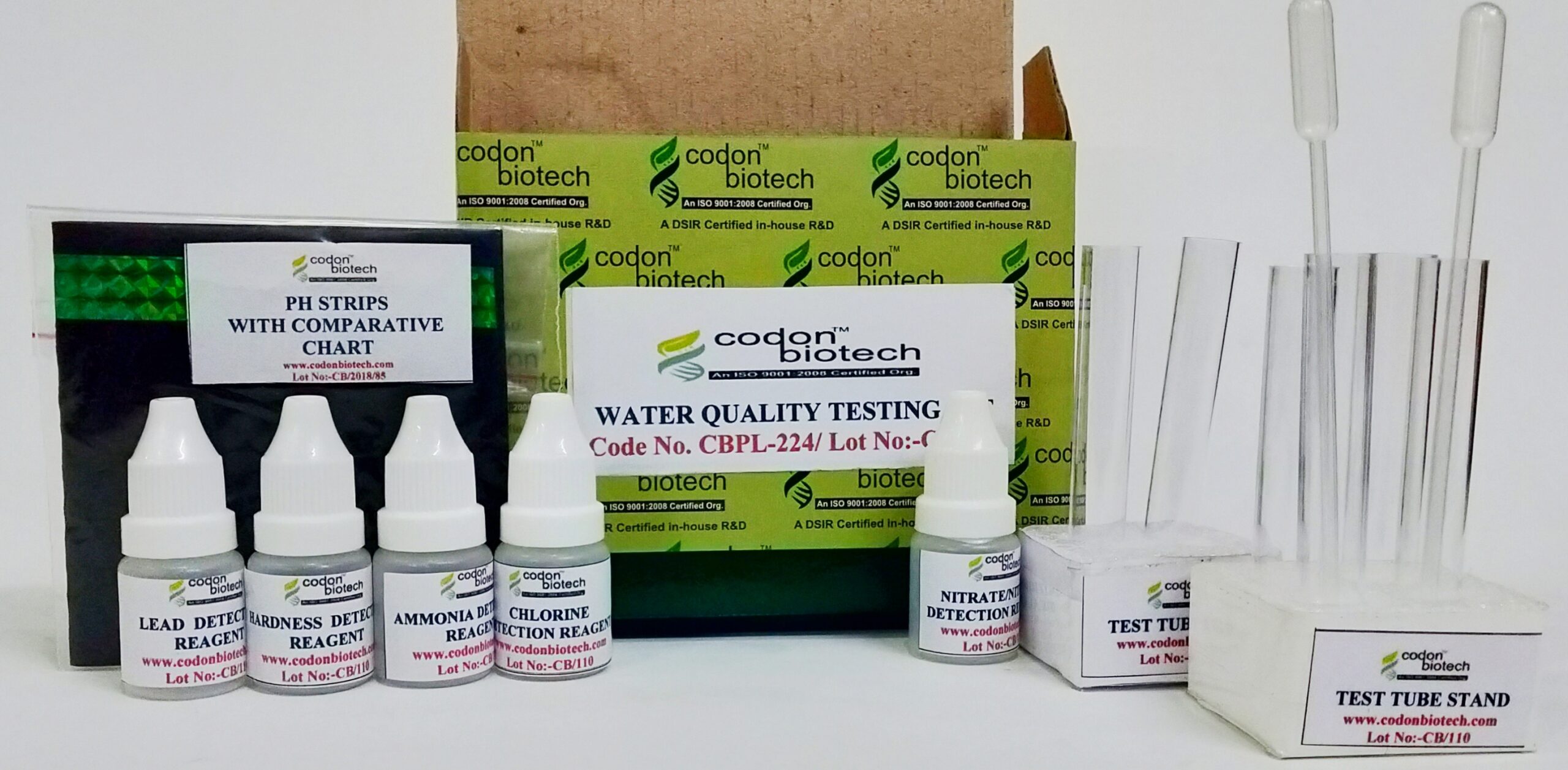Water testing kit detects the presence of harmful chemicals like Nitrates, Chlorine, Lead, ammonium ions, Hardness and microorganisms in potable as well as tap water.